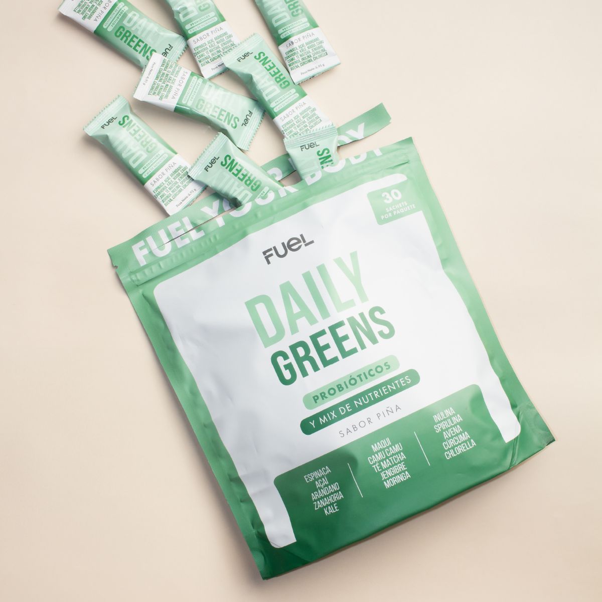 Una porción de nuestro Daily Greens reemplaza la necesidad de tomar cualquier tipo de probióticos que debas consumir en 1 día. También a su alto contenido vitamínico, elimina la necesidad de tomar multivitamínicos, a menos que tengas que tomar alguna vitamina particular según recomendación médica.